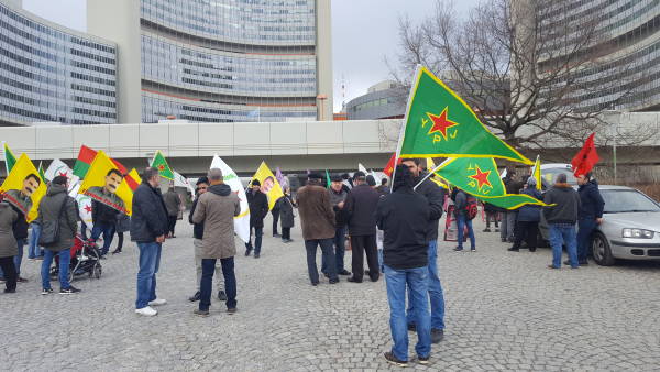 له شاری ڤیهننای پایتهختی نهمسا كوردستانیان و دۆستانیان له بهردهم نوێنهرایهتیی نهتهوهیهكگرتووهكان كۆبوونهوه و هێرشهكانی سهر عهفرینیان ئیدانه كرد.
