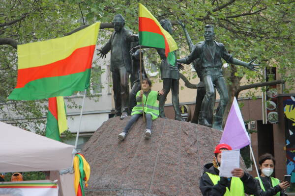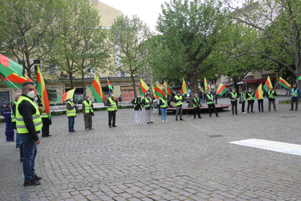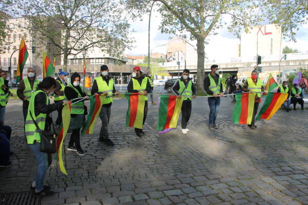 حوسێن یڵماز هاوسەرۆکی ناڤ – بەرلین لە گۆڕەپانی چالاکییەکە وتەیەکی پێشکەشکرد و سڵاوی لە بەرخودانی مانگرتنی دژ بە گۆشەگیری کرد.