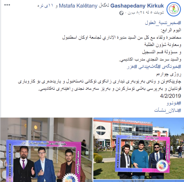 ڕێكخراوی گهشهپێدانی سەر بە یهكگرتووی ئیسلامی، وێنەی ژمارەیهک گەنجی کەرکووک و ناوچە كێشهلهسهرهكانی باشووری کوردستانی بڵاوکردەوە کە به بیانووی جیاجیا بردوونی بۆ تورکیا، هەروەها لە وێنەکان و زانیارییهكاندا کە بڵاوکراونهتهوه، دەردەکەوێت كه دهربارهی فكر و ئایدیۆلۆژیای ئاکەپە وانهیان پێگوتراوه، نیشانەی «ڕابێعە»یان بەرز كردووهتهوه و لەپاڵ وێنەی ئەتاتورک و ئاڵای تورکیا وێنەیان پێگیراوه، هەروەها جیاواز لەوەش سەردانی زانکۆی ئۆکانیان کردوە کە زانكۆیهكی تایبەتە و سهر به پارتەکەی ئهردۆغانه.