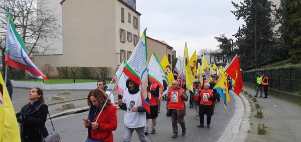 بە سەدان کورد بە ئێلەگی 'ئازادی بۆ کوردستان' لە بەردەم شارەوانی ناوچەی Ivry-Sur-Seinê گرد بوونەوە.