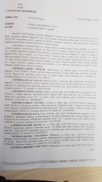 هەفتەی رابردوو لە شاری وان سەربازانی تورکیا ههڵیانكوتایه سهر ماڵان و ٤١ کەسیان دەستگیر کرد. ١٥ لهو دهستگیركراوانه بە بیانووی سیخووڕی کردن بۆ ئێران زیندانی كران. گوتنی «ئەمانەتەکەی من لەبیر مەکە» کە لە پەیوەندییە تەلهفۆنییەکانیاندا بەکارهاتووە، وەکوو کاری سیخووڕی لێکدانەوەی بۆ کراوە.