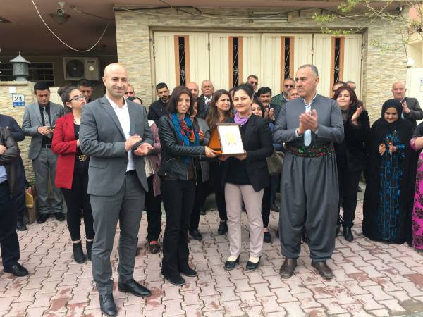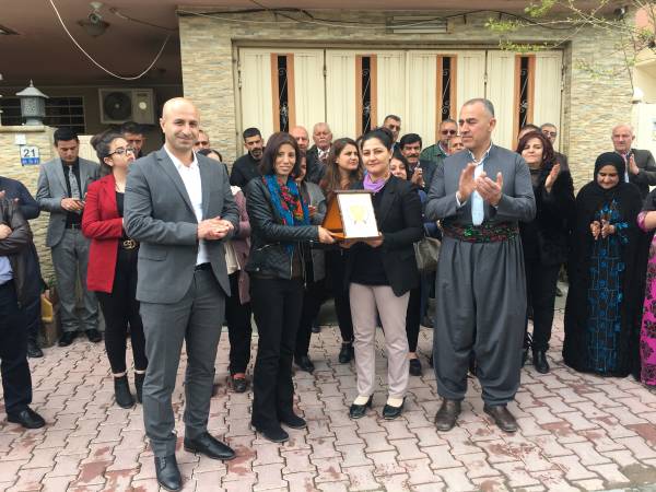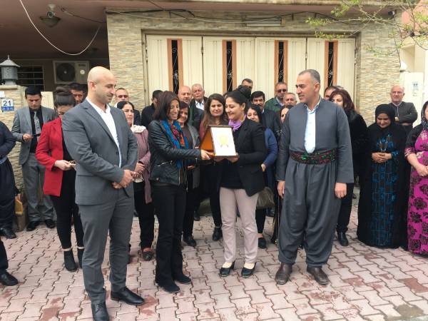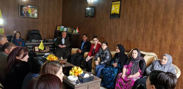 شاندەکە بهمهبهستی پیرۆزبایی كردن بهبۆنهی سهركهوتن بهسهر داعش له لایهن هێزهكانی سووریای دیموكراتی (قهسهده) سهردانی نوێنهرایهتییهكهیان كرد و له لایهن هاوسەرۆکانی نوێنهرایهتیی خۆبهڕێوهبهریی باكوور و ڕۆژههڵاتی سووریا خەولە مستەفا و مهسعوود حەسۆ و نوێنهری کۆنگرەی ستار جیهان خەلیل پێشوازییان لێ كرا. شاندەکە پیرۆزبایی خۆیان و گەلی باشووری کوردستانیان ئاراستهی گەلانی باکوور و ڕۆژهەڵاتی سووریا کرد بەبۆنهی سەرکەوتن بهسهر داعشدا.