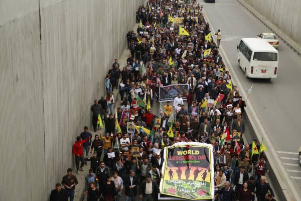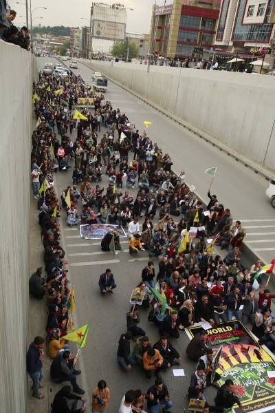 رێپێوانەکە بە دروشمەکانی "بمرێت پیلانگێڕیی ٩ی ئۆکتۆبەر"، "بمرێ داگیرکاریی"، "بژی سەرۆک ئاپۆ"، "بژی بەرخۆدانی ڕۆژئاوا" کۆتایی هات.
